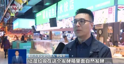 重慶市某企業(yè)負(fù)責(zé)人 李保平:就是通過(guò)有機(jī)菌種,讓濕垃圾在發(fā)酵箱里面自然發(fā)酵,把水,還有二氧化碳,這些全部分解出來(lái)。水就通過(guò)我們這個(gè)污水處理設(shè)備,然后達(dá)到市政排放標(biāo)準(zhǔn)之后直接排入地下管網(wǎng)。二氧化碳我們還有一個(gè)專(zhuān)門(mén)的廢氣處置設(shè)備,也是達(dá)到市政排放標(biāo)準(zhǔn)之后排入大氣中。