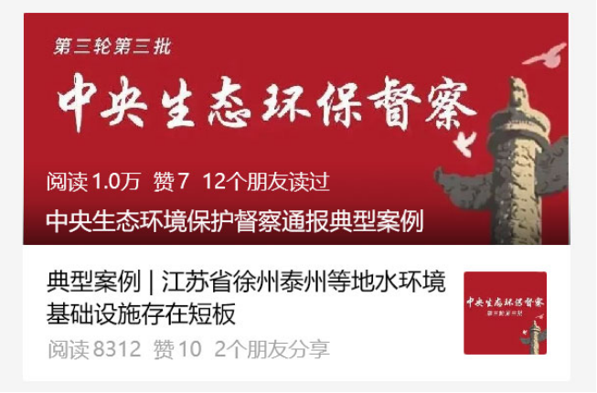 生態(tài)環(huán)境部11月20日消息,中央生態(tài)環(huán)境保護(hù)督察通報典型案例。江蘇徐州、泰州被點(diǎn)名。